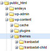 Bước 2: Sau khi bạn đã tải theme gốc lên hosting, thì bây giờ bạn hãy tải nốt child theme lên cùng folder themes luôn, theo đường dẫn: /wp-content/themes. Sau đó giải nén ra và bạn sẽ có như trong ảnh: